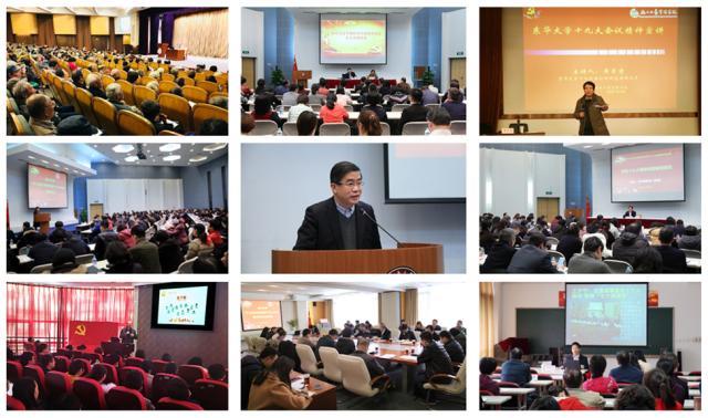 学校党委专门举办以“学习宣传贯彻党的十九大精神,真抓实干推动事业发展”为主题的集中轮训,并将学习贯彻落实习近平新时代中国特色社会主义思想、党的十九大和全国两会精神等融入各类学习和培训之中,全校先后组织师生党员开展各类专题学习、交流研讨800余次,引导党员进一步牢固树立“四个意识”,坚定“四个自信”,形成了“领导干部带头学、党员干部深入学、广大党员主动学”的生动局面。校党委书记朱民带头上专题党课,并从新时代高等教育的新使命、pg娱乐电子游戏的新任务、东华干部的新作为三个层面就贯彻落实党的十九大精神,全面提升学校办学质量和广大党员干部做了深入交流;中国社会科学院教授侯惠勤围绕党的十九大报告体现的马克思主义理论创新的特点,深入阐释了党的十九大精神内涵;松江区委书记程向民围绕松江区的发展规划和建设蓝图,讲述了新时代区校深度合作的新气象、新要求和新作为;市党建研究会常务副会长、市委组织部原副部长冯小敏研究员从新时代加强党的建设新站位、对党建工作的总要求和党建思想核心等方面对习近平新时代中国特色社会主义党建思想进行了全面系统地分析解;上海社会科学院副院长张兆安研究员围绕宪法修改、机构改革、政府工作报告等内容对全国“两会”精神作了深入解读。此外,深入开展党的十九大精神宣讲,目前学校讲师团已深入各二级单位和教学、科研工作一线宣讲党的十九大精神20余场,为2600余名师生提供全方位、系统化、多角度的理论阐释和思想指导。在全面深入学习的基础上,广大党员干部还围绕深刻领会习近平新时代中国特色社会主义思想、学习贯彻落实党的十九大精神、把握新时代高等教育的新使命新任务、进一步加强内涵建设、全面提升质量以及加快人才发展体制机制改革、学校干部在新要求下的新作为等内容进行了深入讨论交流。