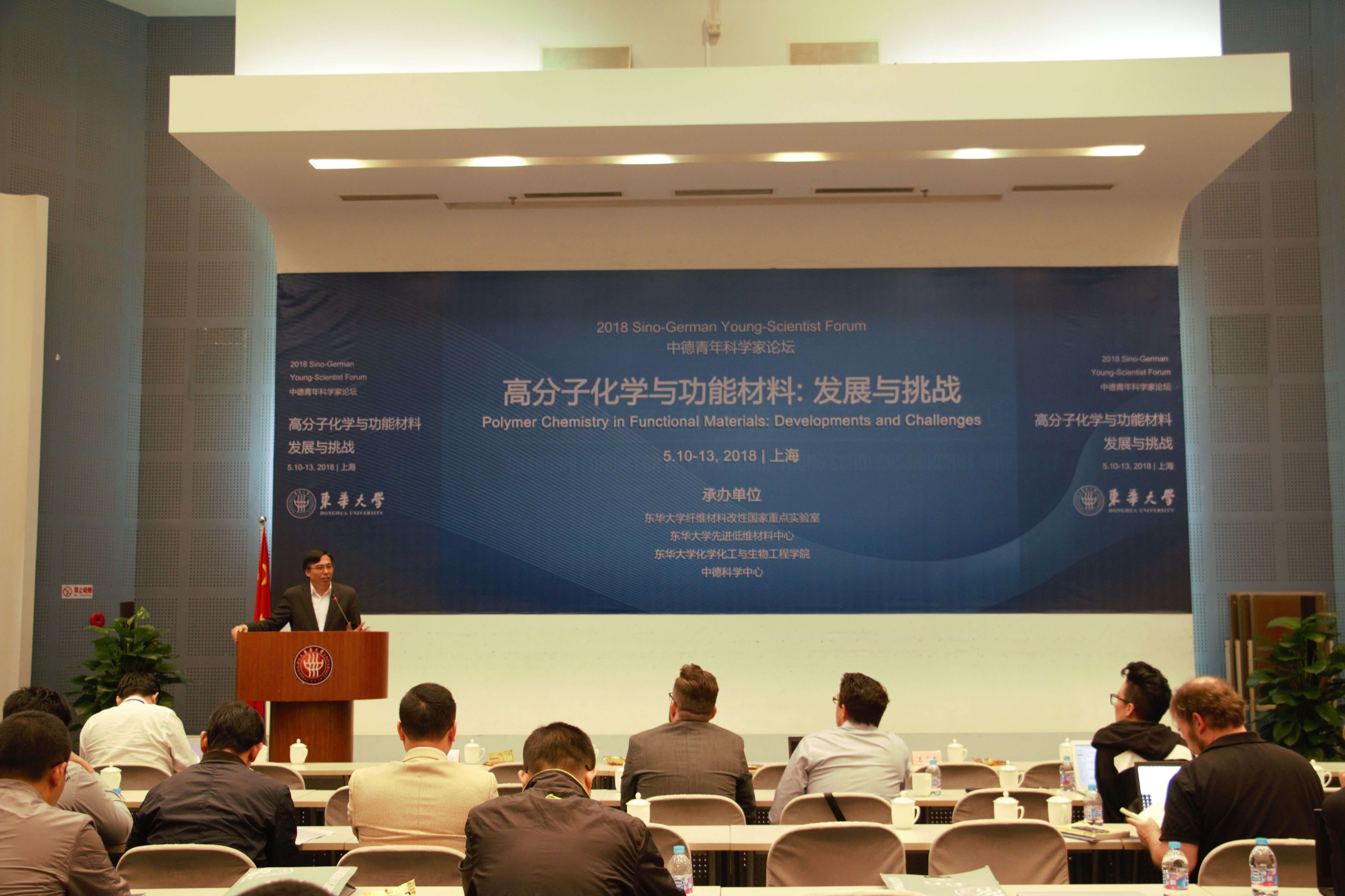 5月10日至13日,由纤维材料改性国家重点实验室(pg娱乐电子游戏)、先进低维材料中心、化学化工与生物工程学院共同主办,国家自然科学基金委(NSFC)和德国科学基金委(DFG)全额资助的2018中德青年科学家论坛——“高分子化学与功能材料:发展与挑战”在我校松江校区举行。来自康斯坦茨大学、马普高分子所、美因茨大学、纽伦堡大学、奥地利维也纳技术大学,以及清华大学、浙江大学、复旦大学、中国科技大学等20余所国内外高校、科研院所的30余名青年学者参加会议,围绕高分子化学与功能材料领域的发展趋势及未来挑战开展学术交流。论坛由我校先进低维材料中心特聘研究员孙胜童主持。