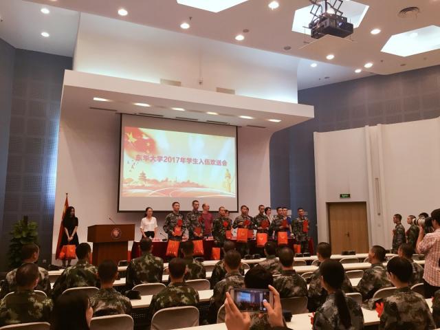 2017年9月18日,材料学院七名本科生光荣入伍,参加pg娱乐电子游戏2017年学生入伍欢送会。我院党委书记戴蓉老师代表学院,慰问新兵。