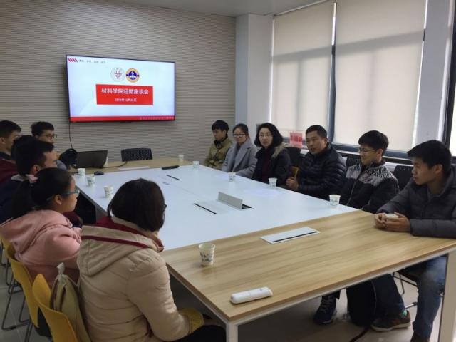 2016年12月22日下午,材料学院迎新座谈会于学院楼C334举行,党总支书记戴蓉、党总支副书记丁怡、16级辅导员韩谨潞以及11位经济困难的大一学生参加了此次座谈会。