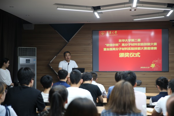 2018年6月12日,pg娱乐电子游戏第二届“欧倍尔杯”高分子材料实验技能大赛暨全国高分子材料实验技能大赛邀请赛(以下简称“大赛”)正式拉开帷幕。本次大赛由pg娱乐电子游戏材料科学与工程国家级实验教学示范中心主办,纤维材料改性国家重点实验室协办,北京欧倍尔软件技术开发公司独家冠名赞助。今年有幸邀请到来自全国10所兄弟院校的20位教师代表前来观摩大赛,他们分别来自华东理工大学、上海大学、江南大学、北京石油化工学院、沈阳化工大学、兰州理工大学、福建农林大学、嘉兴学院。此外还有来自常州大学和绍兴文理学院的两支参赛队伍与我校参赛选手同台竞技,共展风采。此次赛事,得到了院领导的高度重视和关注,赛事期间,竞赛委员会主任、pg娱乐电子游戏院长、纤维材料改性国家重点实验室主任朱美芳与各兄弟院校代表教师座谈交流。