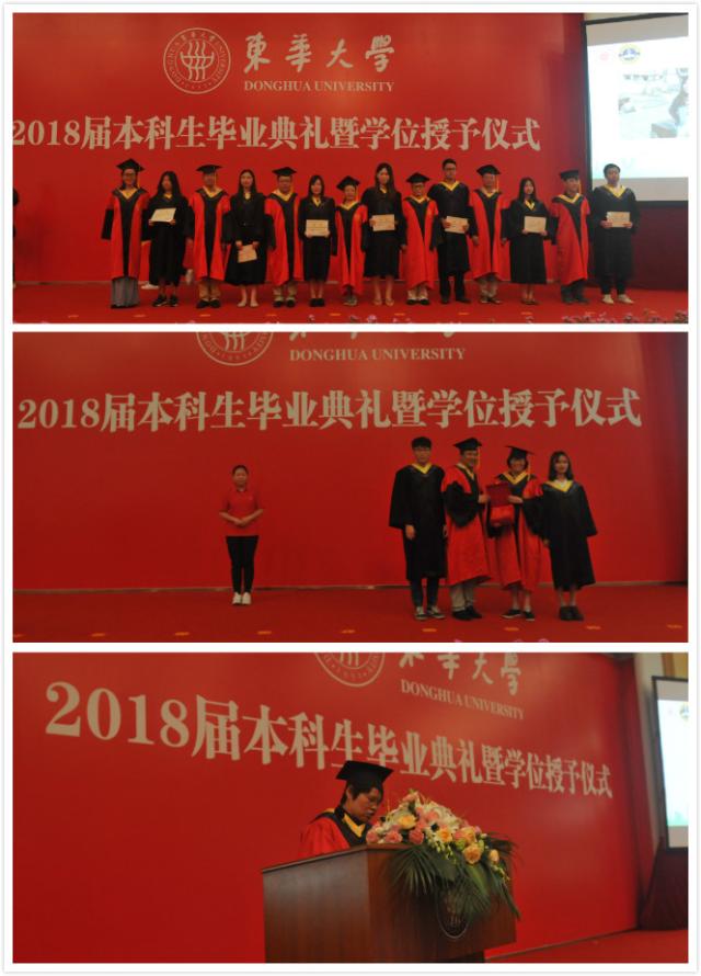 本次大会分为“毕业典礼”、“学位授予”、“扬帆启航”三个篇章。在雄壮的国歌声后,典礼拉开帷幕。材料学院院长朱美芳教授上台宣读各类优秀名单,包括上海市优秀毕业生、pg娱乐电子游戏优秀毕业生、pg娱乐电子游戏优秀毕业论文获得者以及西藏专招生名单,并由导师代表为以上荣誉获得者颁奖,这份“沉甸甸”的证书是他们用四年的努力换得的成果。