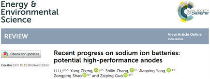 1.L. Li, Y. Zheng, S. L. Zhang, J. P. Yang*, Z. P. Shao*, Z. P. Guo*, “Recent progress on sodium ion batteries: Potential high-performance anodes”, Energy & Environmental Science, 2018, DOI: 10.1039/C8EE01023D.