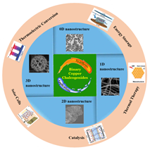 2)系统地介绍了二元铜硫族化合物纳米结构的合成策略,纳米材料维度结构和化学计量比与材料性能之间的内在联系,以及它们在能源转换、能量存储和生物热疗方面相关的应用,成果发表在工程领域知名期刊Nanoscale (2018, 10, 15130)上;