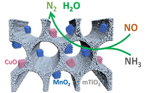 4)提出并发展了自组装限域三元催化剂应用于低温选择性催化还原氮氧化物,该技术克服了多元催化剂设计过程中催化剂颗粒分散性与尺寸不均的问题,显著降低了废气低温脱硝的温度、提高了氮气选择性,极大推动了废气低温脱硝催化剂的工程化应用。相关成果发表在化学领域知名期刊Chemical Communications (2018, 54, 3783)上;