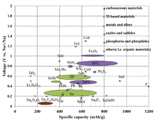 在全球能源与环境问题日益严峻的情况下,开发高效、清洁、可再生新能源的任务变得十分迫切。锂离子电池因能量密度大、循环寿命长、工作电压高、自放电小、工作温度范围宽及无记忆效应等优点,近年来,在电子设备、交通工具、清洁能源储存等应用中受到广泛关注。但高成本一直是制约锂离子电池发展的瓶颈之一。随着锂离子电池逐渐应用于电动汽车,锂资源需求量大大增加,价格随之不断上升,且锂资源储量有限、全球分布不均,这些因素将会制约具有稳定性能的锂离子电池大规模发展。因而,研究高性能且资源丰富的储能材料对人类社会实现可持续发展具有重要意义。与锂相比,钠资源储量十分丰富,约占地壳储量的2.64%,是地壳中储量第六丰富的元素,且分布广泛、提炼简单。所以,近十年来,利用钠离子实现反复充放电的二次电池得到国内外储能领域研究人员的广泛关注,并且已经取得了显著的进展,但还有待改进,以实现钠离子电池在能量/功率密度和长循环稳定性方面的商业化。