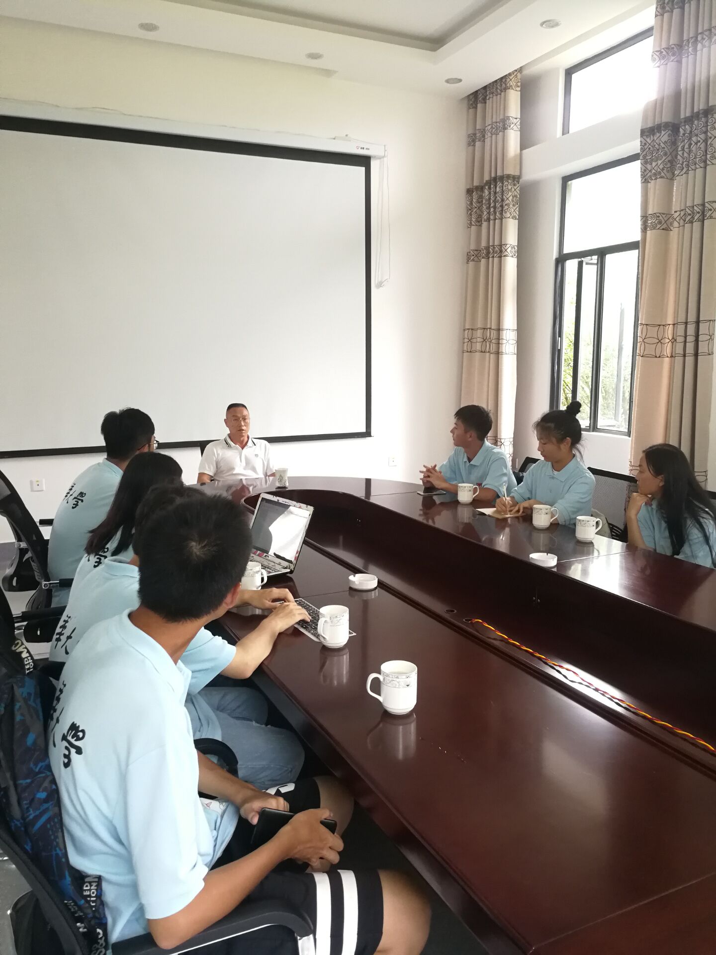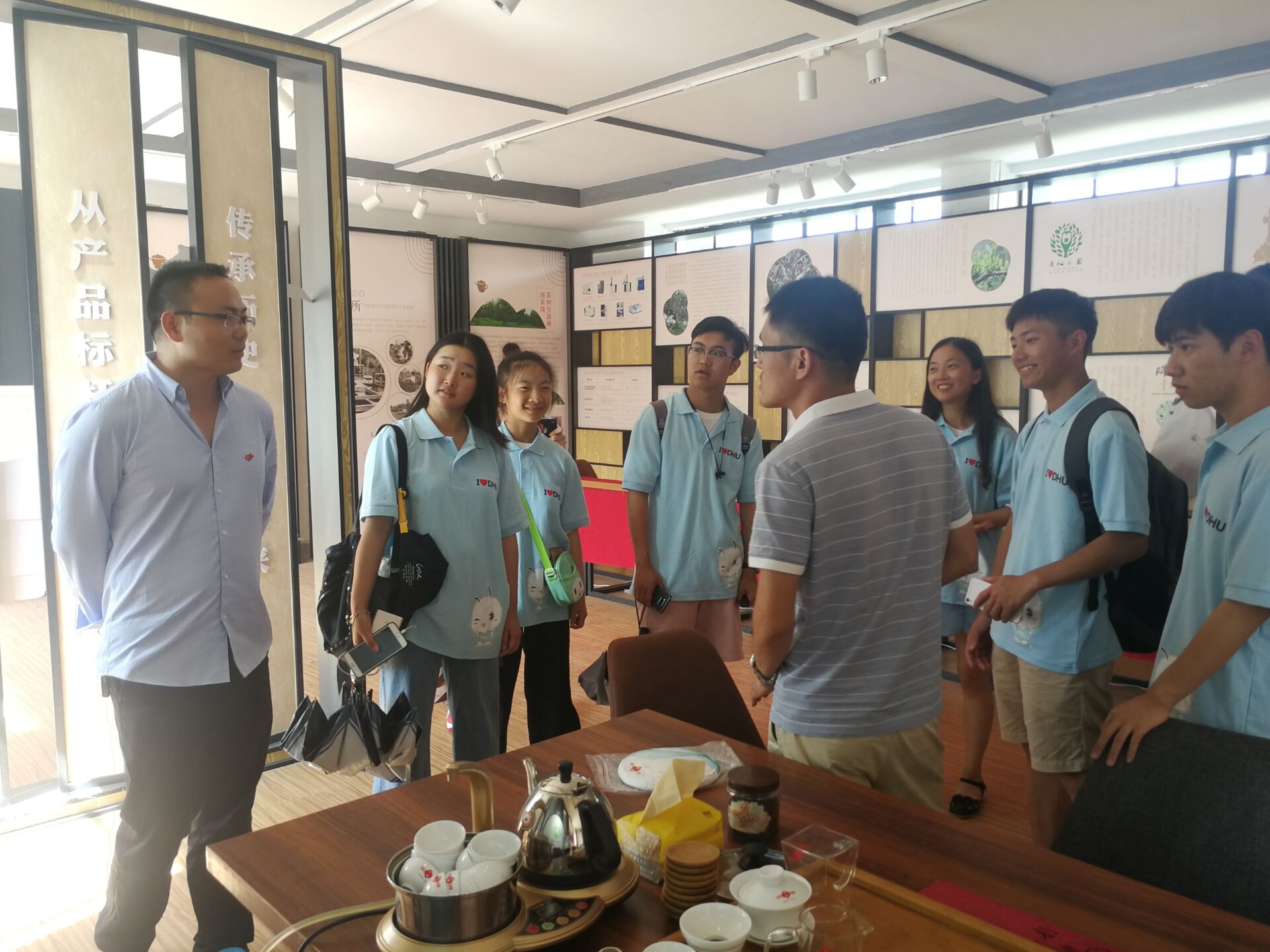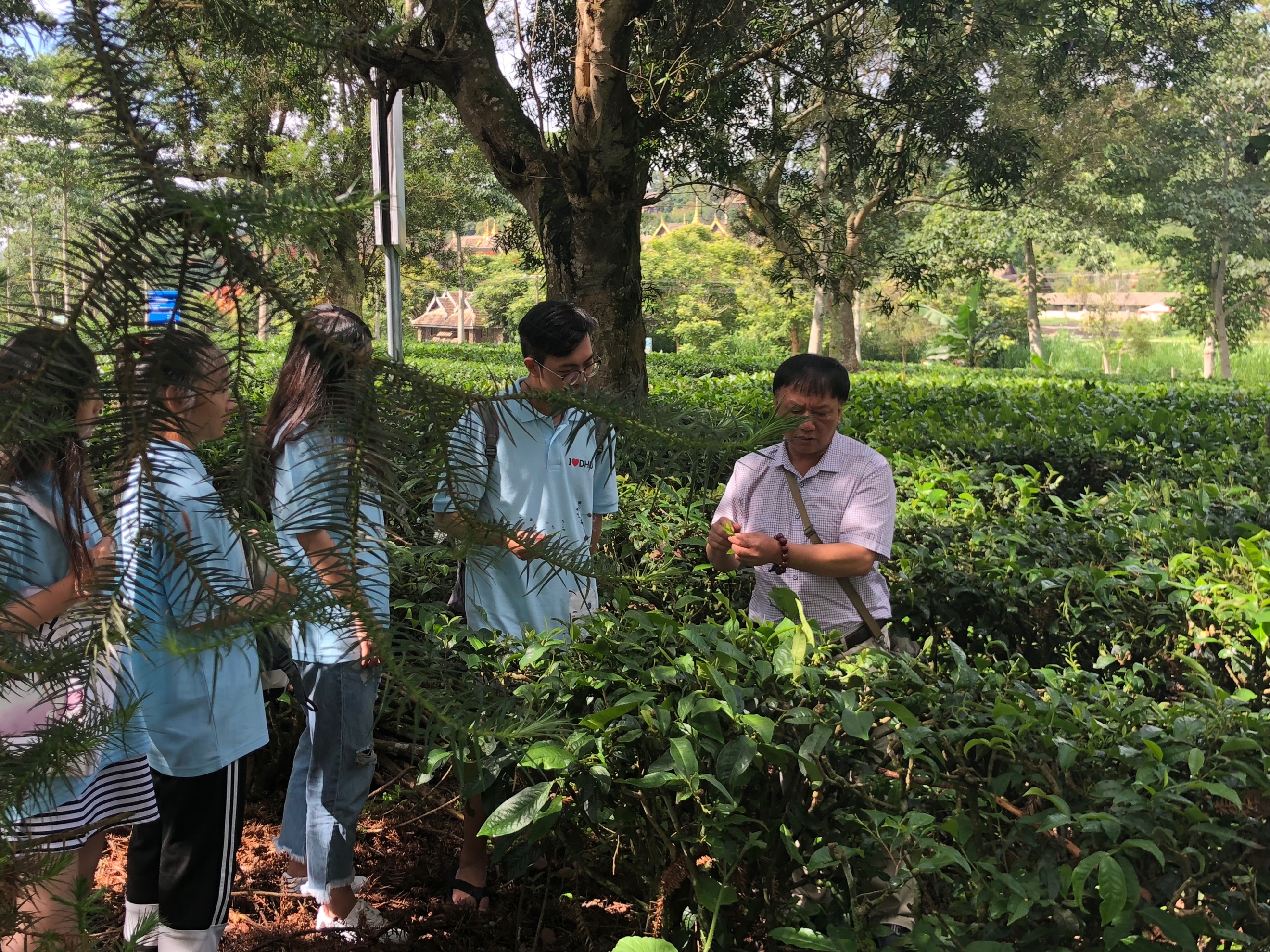 在博物馆简单了解茶叶知识以后,实践团来到了西双版纳的茶叶研究(农科院茶叶方面分所)。研究所的第一站,实践团来到了成果展示厅,刘主任向实践团讲解了研究所响应国家精准扶贫计划,设立爱心屋,帮助长期以来受中间商压榨的茶农们,在茶叶品种的选择,茶园管理等方面提供专业知识,并以农科院的身份和各大企业交涉,尽最大能力使利润流向茶农。除此之外,还向实践团介绍了多种茶园管理方式,以及科研所自行研发的新型茶叶品种,其主要在抗旱、防虫、储存、口感、成分浓度等方面作出革新。通过对茶叶的调研,实践团成员了解到的不仅仅是茶叶,更多的还是一种人文关怀:江总是在1997年进入茶科所的。他本来是学财务的,但后来也走上了科研的道路。江总对实践团成员这么说:“真正讲到许多专业的知识,因为它们深度太深,你们未必理解得了。所以我更希望这一次的调研对你们来说,是一次接触新的世界的旅程。我也希望我的经历可以告诉你们,你们现在所学的知识,可能未必会在你今后的人生中发挥作用,但你现在把它给学好,总是不会错的。许多知识是相通的,多学一些总是好的。”