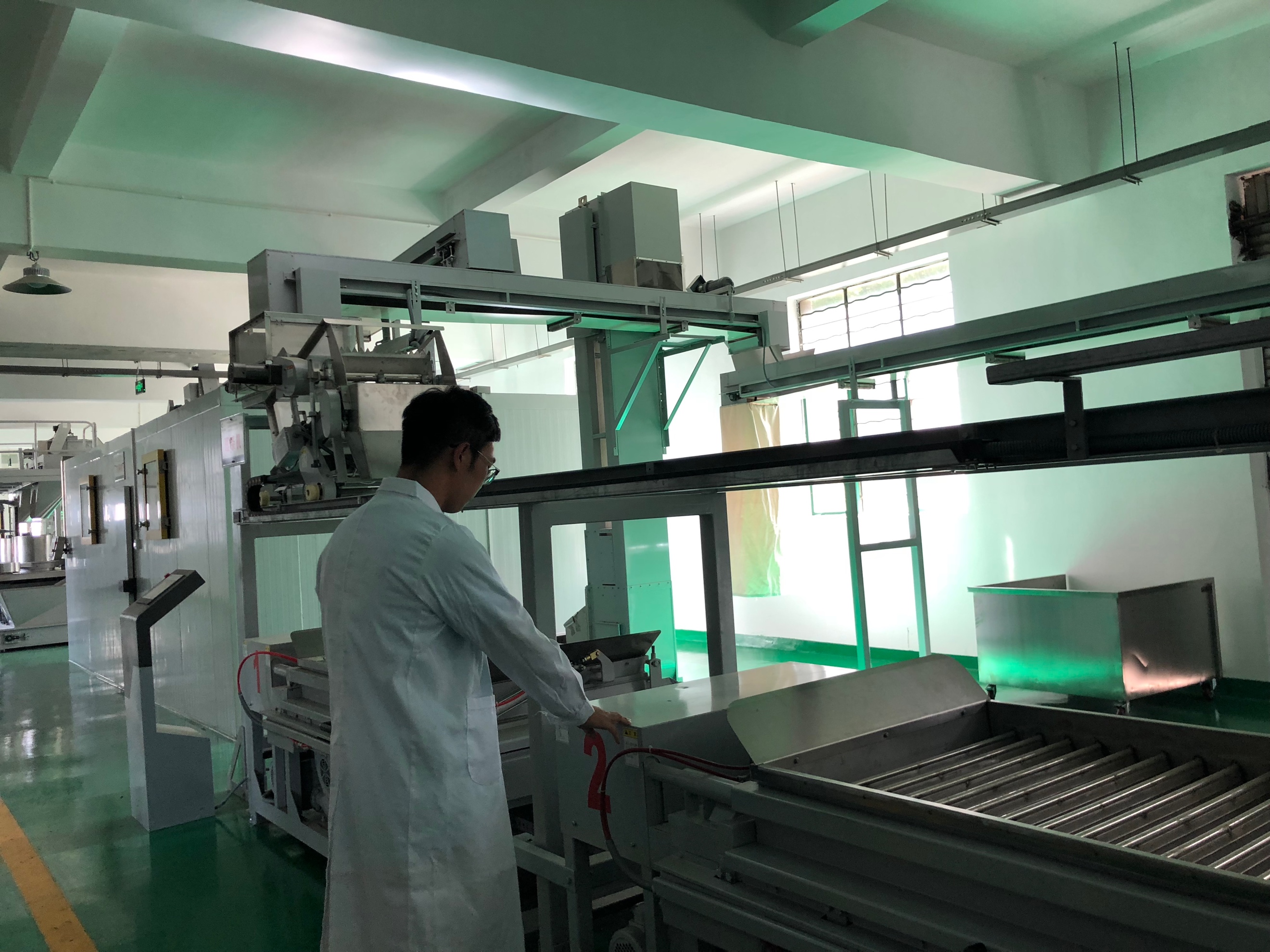 为了了解云茶商业生产的情况,我们来到了七彩云南茶叶生产有限公司,实践团成员前往茶叶研究所与周主任会和。在参观工厂的过程中,实践团成员看到了许多形状各异的机器,从周主任的讲解中,我们知道了各种机器的作用及工作原理。晾干机是通过机械臂的搅动和传送带的翻转,使新鲜茶叶与空气充分接触,极大程度提高水分的蒸发速率,发酵机是通过严格控制仪器中的温度与湿度,使茶叶在机器中充分的发酵,压制机将茶叶倒入特定形状的凹槽后,使用类似液压机的原理,将凹槽中的茶叶压制成固定的形状,此时茶叶中仍旧存在一定量的水分,不利于茶叶保存,将这时的茶叶导入烘干机,烘干机通过加温和空气的快速流动,将水分充分蒸发。经过以上的步骤后,茶叶的粗加工已经完成。这种精密的加工过程使实践团成员认识到了配合的重要性,每一个人各司其职,并在此之上与他人进行配合,只有这样才能完成一个长远的目标。
