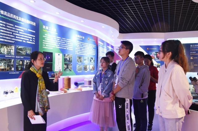 图为肖茹教授介绍粘胶基碳纤维