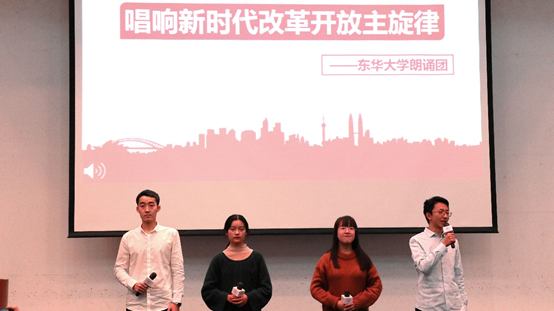 随后,各学院征文比赛一等奖获奖者代表进行优秀作品研讨,pg娱乐电子游戏朗诵团用诗朗诵《唱响新时代改革开放主旋律》献礼改革开放,东华研报主编、马克思主义学院史鑫茹深入解读了马克思战斗的一生以及学习的一生。一系列环节旨在鼓励新时代的青年人开拓进取,砥砺前行,努力成为各领域创新发展的有理想、有本领的先行者,彰显改革开放时代下青年人的新担当、新作为。