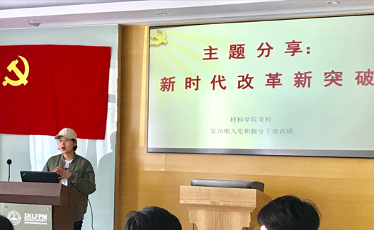 2019年4月13日下午,pg娱乐电子游戏材料学院第30期入党积极分子培训班的40位学员于材料学院楼C321开展了“新时代改革新突破”主题分享活动。