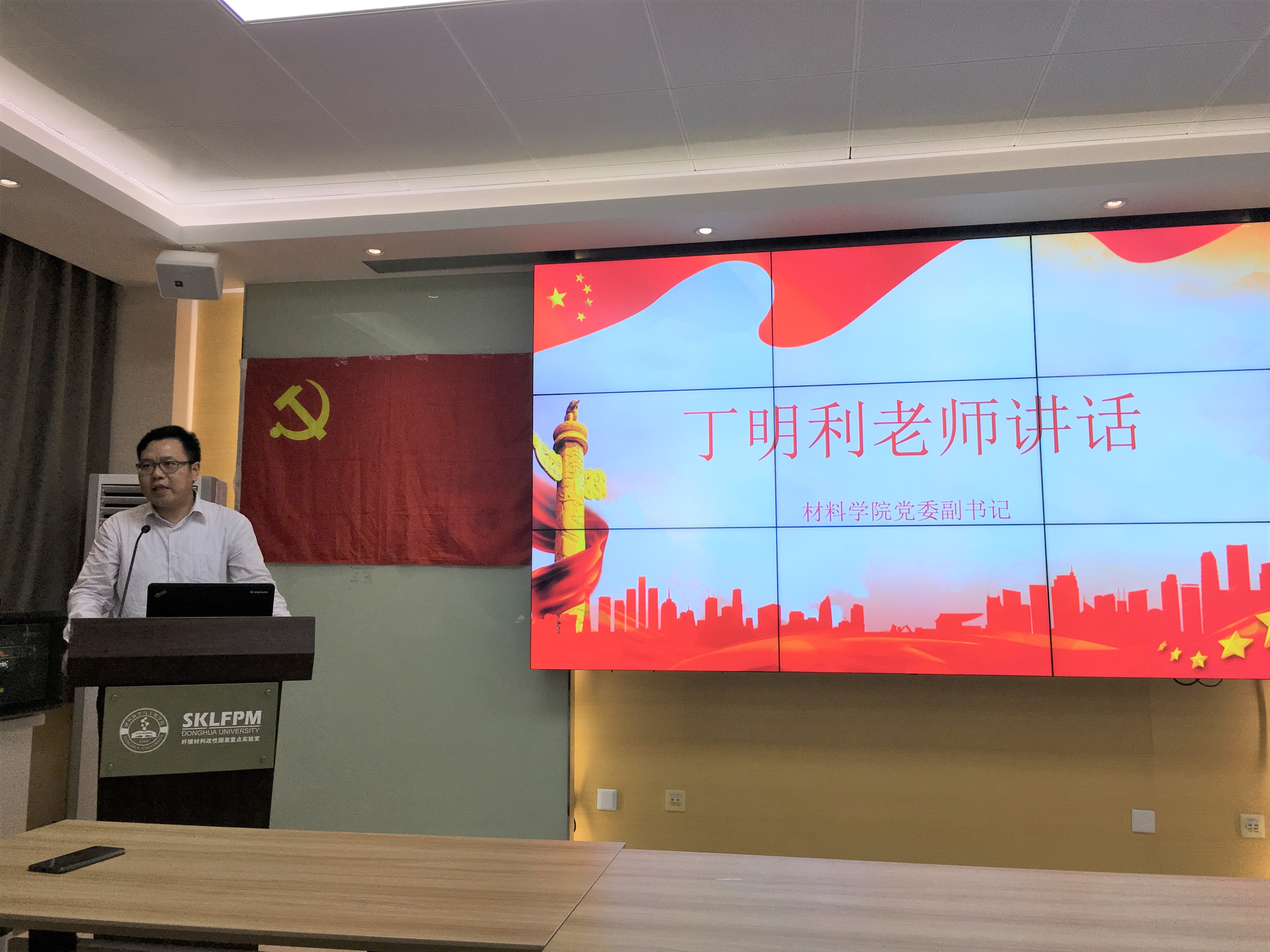 在全体成员奏唱国歌后,预备党员培训班学员代表柏雨婷进行了发言。柏雨婷向大家汇报了自己对预备党员责任使命的理解,她表示,作为新时代的青年人,要肩负中华民族伟大复兴的使命,不忘初心,砥砺前行。她代表全体学员向党组织庄严承诺,要善学善思,积极关注时事热点,拼搏奋进,努力提高党性修养和综合素质。之后,材料学院党委副书记丁明利作了总结发言。他指出,今天对于各位学员是个特殊的日子,是纪念抗日战争74周年的日子,作为预备党员更应铭记初心、明确责任,严格要求自己,把学到的新思想转化为前进的动力。丁明利老师还向学员们提出了几点希望:要扎扎实实学习文化知识,认认真真思考党的理论,走在群众的前面,走在时代潮流的前面。