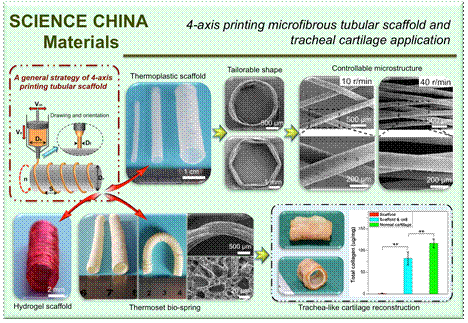 相关成果以“4-axis printing microfibrous tubular scaffold and tracheal cartilage application”为题,发表于中国材料学杂志《SCIENCE CHINA Materials》上。pg娱乐电子游戏博士生雷东为第一作者,pg娱乐电子游戏游正伟教授,上海交通大学医学院附属第九人民医院周广东教授,同济大学附属上海市肺科医院徐勇医生为该论文的共同通讯作者。该工作获得国家重点研发计划、国家自然科学基金、上海市自然科学基金、pg娱乐电子游戏励志计划等基金资助。