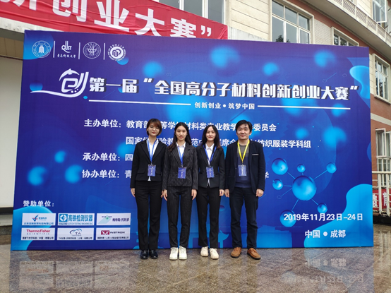 1122-24,第一届全国高分子材料创新创业大赛总决赛在四川大学举行。我院本科生“白昼流星”团队(17级本科生徐锦琳、贾宇航、刘钦,17级硕士陆建晓)的作品,《卫生用材差别化聚乳酸纤维非织造材料产业化技术》荣获全国二等奖。该项目由纺织科创中心马博谋和材料学院青年教师张辉指导。