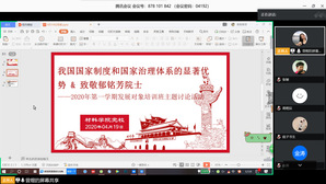 2020年4月19日下午,pg娱乐电子游戏2020年第一学期发展对象培训班依托腾讯会议平台举行线上主题讨论,学员们就《我国国家制度和国家治理体系的显著优势》及《致敬致哀!走近郁铭芳院士》两个主题展开探讨。