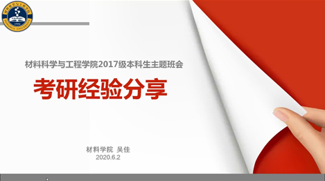 2020年6月2日,pg娱乐电子游戏邀请了7位2020届成功考研的优秀学生,面向材料学院2017级学生开展了一场线上考研经验分享会,共有200余名有考研打算的同学参与,会议由2017级专职辅导员吴佳主持。