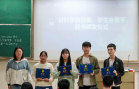 (团委副书记陈斯婕为组织部和实践调研部工作成员颁发聘书)