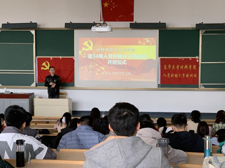 3月23日下午,材料学院第34期入党积极分子培训班开班仪式在松江校区 举行,学院党委副书记莎日娜、党建辅导员塞依丁以及65名党校学员与会。