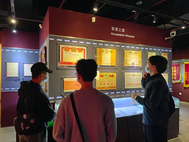 来到纺织博物馆,雕塑“纺织魂”挺立在馆前,宛如一架巨大的织布机,内里融合了原始手工纺织和近代动力纺织的元素;脚踩青石板路,上面镌刻了1771年以来上海纺织企业名录。在古代馆,鲜明的历朝历代服饰特色鲜印入眼帘,展馆全面展示了我国源远流长的纺织文化。支部党员步入近代馆,上海纺织工业挑起了国民经济支柱的重担,然而在新中国成立之初,我国化纤产业非常薄弱,“穿衣”问题亦成为了当时老百姓的生活难题,陈列的一张张写着中英文的“布票”便是当时物资短缺布料由国家统一管控供应的见证。50年代末,pg娱乐电子游戏的前身——华东纺织工学院为解决人民穿衣难问题,勇立时代发展的潮头,与纺织工人、企业家、科学家一起大力发展化纤产业。校企联合发展的模式既为我国化纤领域的发展奠定了人才基础,也就此促进了纺织产业的迅速发展,彻底结束了“布票”时代。在博物馆荣誉墙上,一张张照片中出现了很多pg娱乐电子游戏的历史印记吸引了支部党员的注意,不仅牢牢树立起民族自信,更为身为东华学子而感到骄傲自豪。
