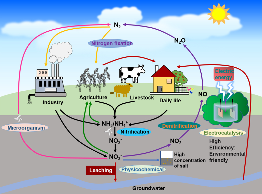 在过去的一个世纪里,人为排放的含氮污染物迅速增加,导致全球氮循环严重失衡,造成了许多生态环境问题。地下水中硝酸盐累计会造成水体富营养化,而地表水以及饮用水中硝酸盐含量超标会对人类健康造成威胁。在许多去除硝酸盐的技术中,电催化去除硝酸盐是一个非常有潜力的解决方法,有望成为满足日益增长的硝酸盐需要和恢复全球氮平衡的有力手段。本综述系统总结了电催化还原硝酸盐的基本原理,包括反应机理、反应器设计原则、产物检测方法和性能评价方法。详细回顾了过渡金属(尤其是贵金属和合金)、铜基电催化剂和铁基电催化剂在电催化硝酸盐还原的研究进展。最后,重点介绍了该领域当前面临的挑战和潜在机遇,包括材料设计系统的创新、氮气以外其他含氮增值产品的转化,以及大规模污水处理的应用面临的挑战。本文为硝酸盐还原的研究提供了方向,有利于促进全球氮循环的平衡发展和大规模硝酸盐处理的工业化进程。