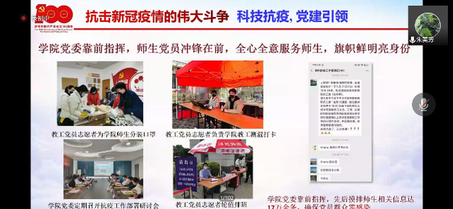据此,此次活动由材料学院博士第一党支部主办,博士第二党支部、博士第三党支部、博士第四党支部以及先进低维材料中心研究生党支部协办,340余名学生党员共同参与。下一步,学院将进一步激发青年学子的使命担当,引领广大同学深入思考如何发挥科技力量,高擎科学家精神火炬,把论文写在抗击疫情的第一线,把研究成果应用到抗疫实践中,以实际行动向迎接党的二十大胜利召开。