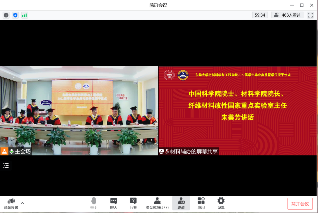 6月22日,材料科学与工程学院2022届学生毕业典礼暨学位授予仪式在“云端”举行,423名毕业生挥别母校,踏上人生新征程。