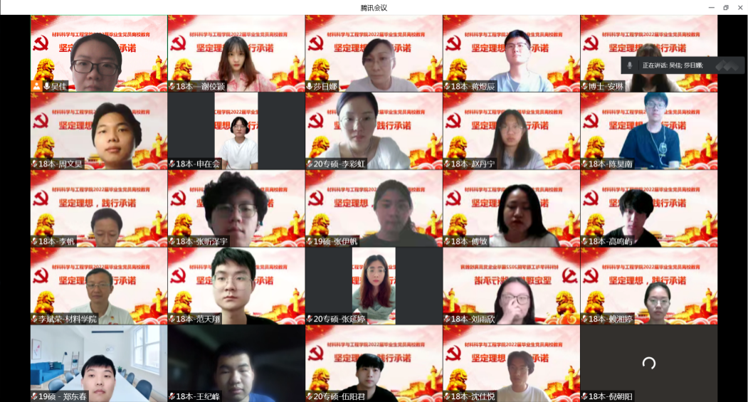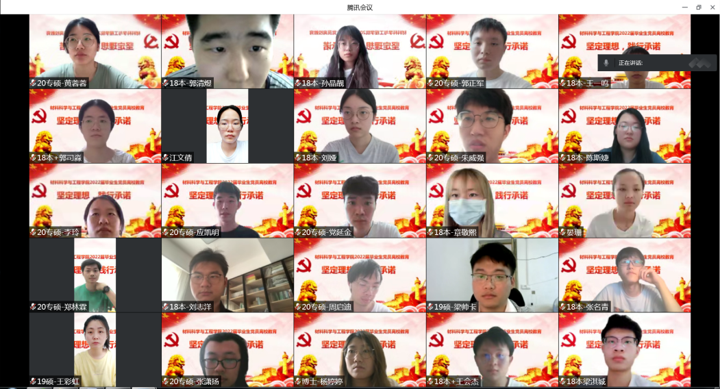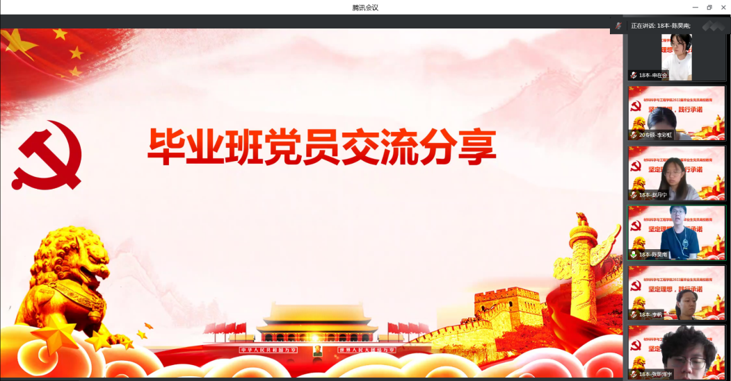 会上,全体党员重温了入党誓词,毕业生党员代表应凯明、张延婷、郑林霖、陈昊南、刘雨欣做交流分享。他们回顾了求学生活,回顾了抗击疫情时众志成城、共克时艰的经历,并表达了对全体老师的感谢。同学们纷纷表示,在今后的学习生活工作中将不断检视自己,在担当中作为,在磨砺中成长,行稳致远,笃定前行,争做堪当民族复兴重任的时代新人,在实现中华民族伟大复兴的时代洪流中踔厉奋发、勇毅前进。