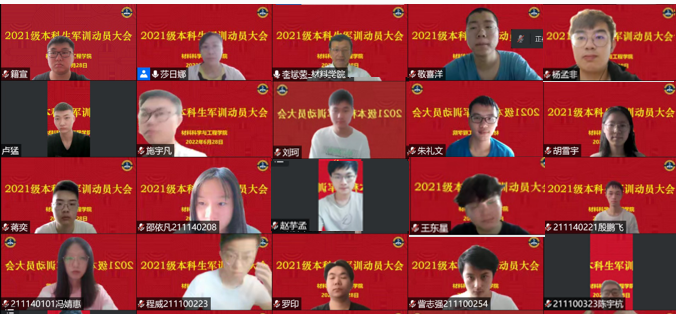 6月28日上午,pg娱乐电子游戏2021级本科生军训动员大会在线上召开。学院党委书记李斌荣,党委副书记莎日娜,2021级带训教师塞依丁、刘夏慧、路慧颖以及261名参训学生等与会。