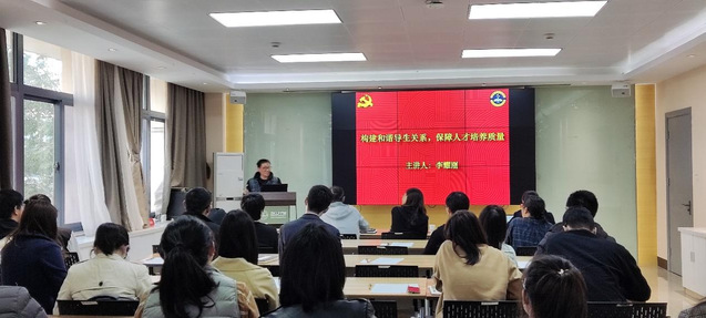 李耀刚教授就“构建和谐师生关系,保障人才培养质量”做了专题分享,李教授以自身实例谈起,指出作为老师应该“爱科研,重教学”,与学生建立良好的师生关系,做到爱生如子、知无不教。作为大学老师,应该在注重自身能力建设的同时,做到高标准、严要求地培养人才。