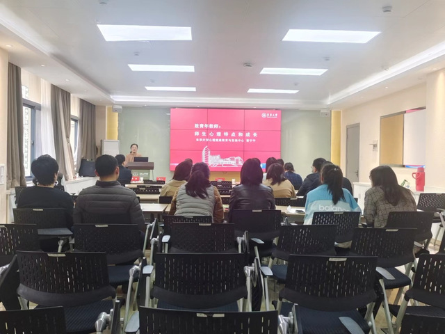 接着,校心理健康教育与咨询中心主任曹宁宁就“师生心理特点与成长”做了专题分享,曹老师指出老师要解决学生的心理问题,首先要正视和解决自身的心理问题,再从“解决问题,激活身体,经营关系,纾解情绪”四部分帮助学生,培养身心健康的新时代材料人才。