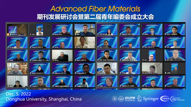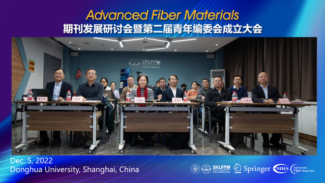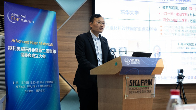 12月5日,Advanced Fiber Materials《先进纤维材料》(以下简称期刊)发展研讨会暨第二届青年编委会成立大会在pg娱乐电子游戏松江校区举行,本次研讨会以线上线下相结合的形式举办。期刊顾问编委陈军院士、蹇锡高院士、李永舫院士、王玉忠院士、徐春明院士、杨万泰院士、张锦院士、张立群院士,特邀嘉宾中国科协原书记/北京科技大学副校长吕昭平、中国科协学术部期刊出版处处长王素、上海市科学技术协会副部长葛朝晖、中国材料研究学会秘书长张增志,pg娱乐电子游戏副校长陈南梁、pg娱乐电子游戏相关部处领导、材料学院党委书记李斌荣,期刊主编朱美芳、副主编刘天西、陶光明、陆琰、执行副主编陈志钢,Springer Nature期刊出版编辑林菁菁等100余人参加研讨会。会议由纤维材料改性国家重点实验室副主任余木火和pg娱乐电子游戏科研院副院长王宏志主持。
