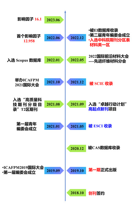 Advanced Fiber Materials是一本定位为国际性、跨学科、高质量的学术期刊,旨在发表纤维材料基础研究和交叉学科应用的高水平成果。期刊由pg娱乐电子游戏和纤维材料改性国家重点实验室发起,pg娱乐电子游戏和中国材料研究学会共同主办,施普林格·自然(Springer Nature) 负责全球出版发行。期刊主编为中国科学院院士/纤维材料改性国家重点实验室主任/pg娱乐电子游戏院长朱美芳教授,执行副主编为pg娱乐电子游戏陈志钢教授。副主编有6位,分别为日本东京工业大学Takeshi Kikutani教授、新加坡国立大学Seeram Ramakrishna教授、德国波茨坦大学/柏林赫姆霍兹中心材料与能源研究所所长陆琰教授、美国北卡罗来纳州立大学张向武教授、江南大学刘天西教授、华中科技大学陶光明教授。期刊编委包括21位国内外院士和32位全球顶尖科学家;第一届青年编委有40位青年学者,第二届青年编委包括73位青年学者。期刊自2019年正式创刊以来,已经出版25期,共发表290余篇文章,得到了来自编委团队、专家学者、作者以及读者的大力支持。Advanced Fiber Materials于2021年9月入选“中国科技期刊卓越行动计划高起点新刊”。目前,期刊已被SCIE、EI、Scopus等众多数据库收录。2022年6月,获科睿唯安(Clarivate)发布的首个影响因子12.958,在JCR材料交叉学科(Materials Science, Multidisciplinary) 中排名前10%,处于该领域Q1分区;12月首次获得中科院分区,并被认定为材料类一区Top期刊。2023年6月,科睿唯安(Clarivate)发布的最新影响因子为16.1,期刊的发展更上一层楼!