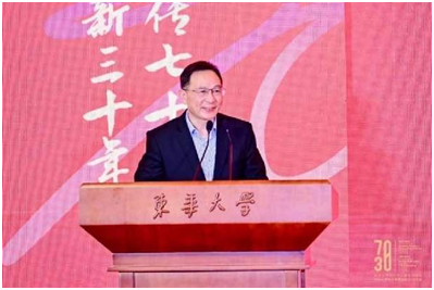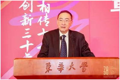 程正迪在致辞中回顾了师从化纤专业创始人钱宝钧教授的求学之路,期望学院充分挖掘学科文化底蕴、发挥材料学科优势特长,不断增强学术影响力、学科发展带动力和对经济社会发展支撑力。