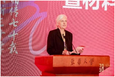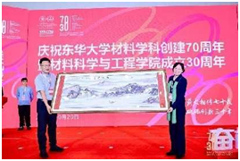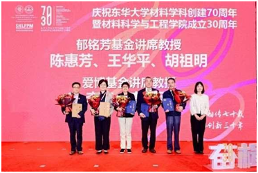 会上,朱美芳宣读校友及社会各界贺词、贺信。沈阳化工大学副校长秦高梧、复旦大学材料系主任俞燕蕾代表兄弟院系赠礼,朱美芳代表学院受礼。