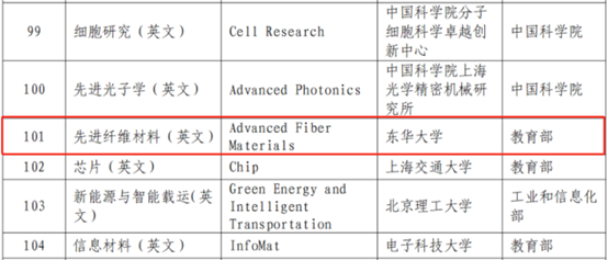 2024年11月28日,中国科技期刊卓越行动计划二期入选项目正式公布:经公开申报、资格审查、陈述答辩、专家委员会复核、结果公示,确定463项入选。其中,Advanced Fiber Materials 《先进纤维材料(英文)》正式入选英文梯队期刊项目!